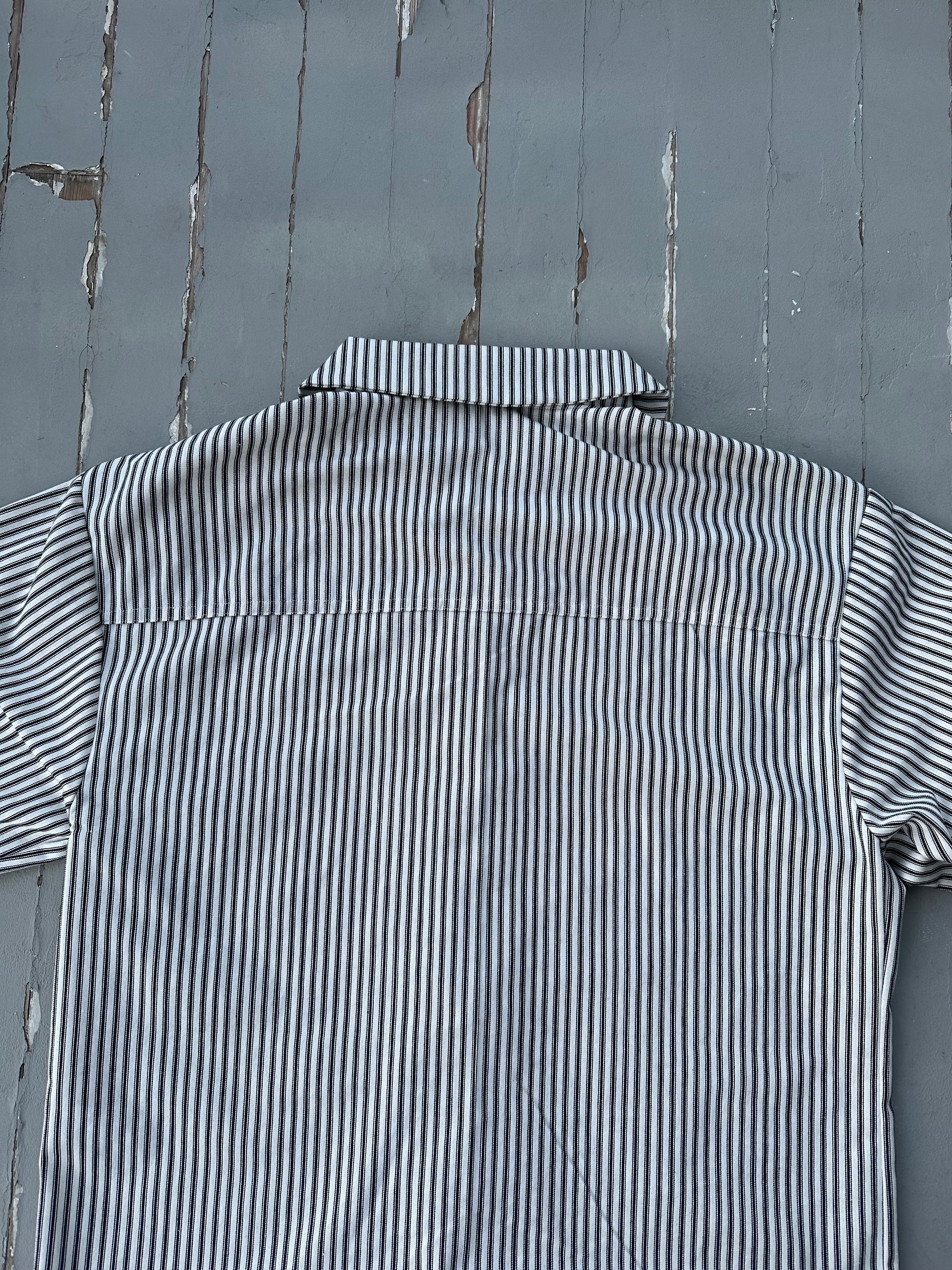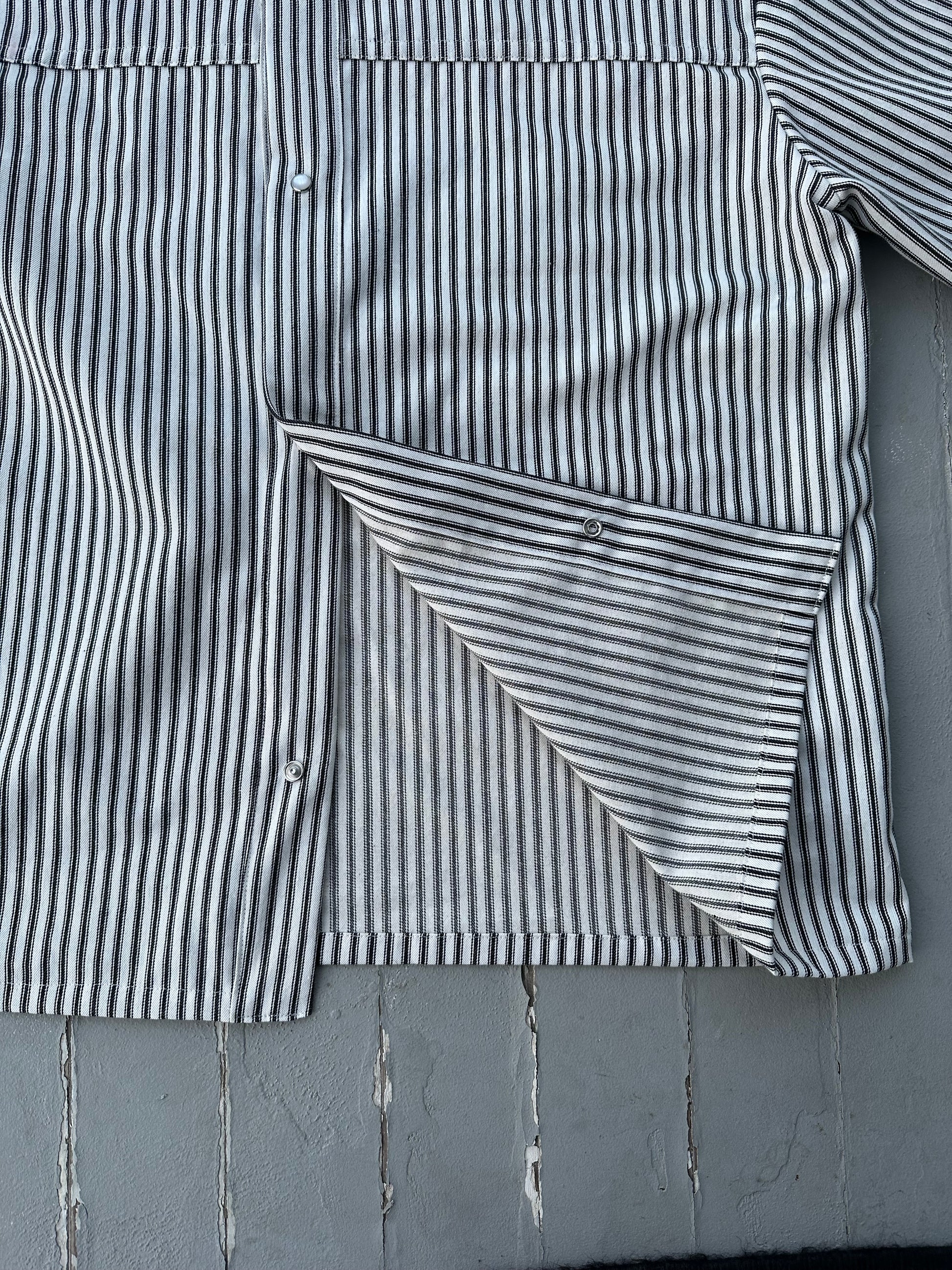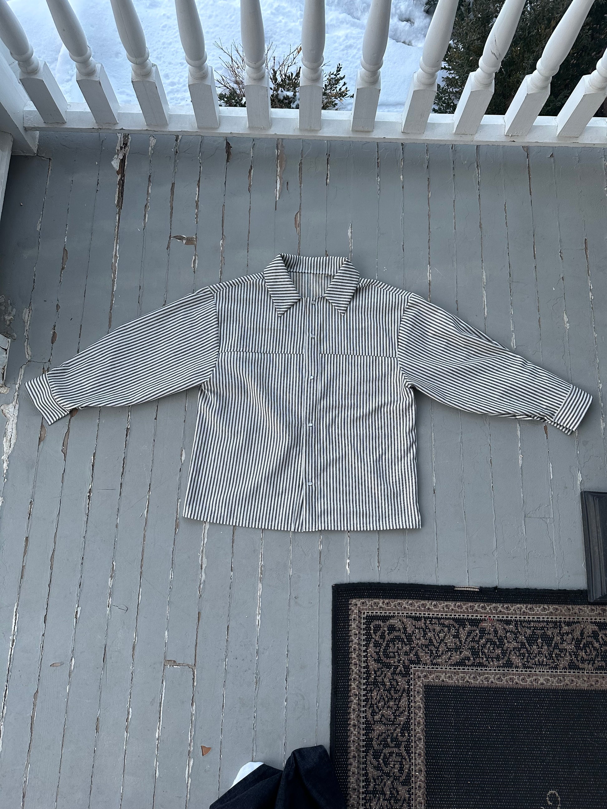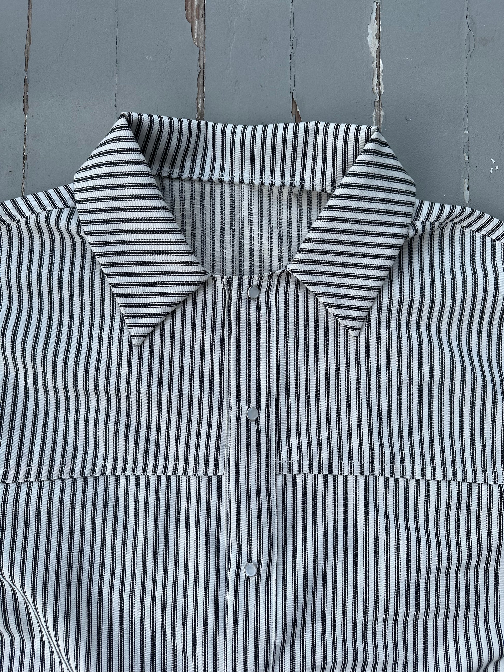 pearl snap fasteners for the front and on the sleeves. Collar inspired by shirts from the 70s